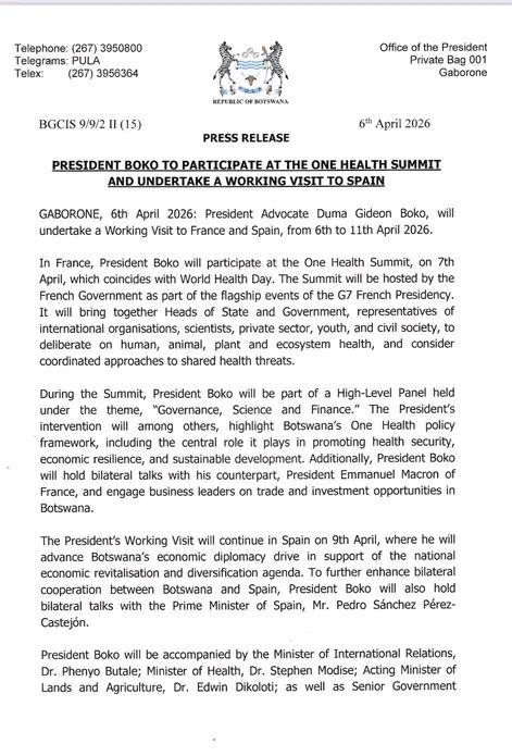 Chobe Connect 2026: Vice President Ndaba Gaolathe delivered a keynote address at this investor conference in Kasane, highlighting Chobe’s potential as a regional tourism and agribusiness hub.